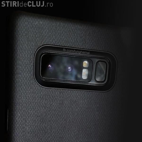 Foarte asemănător modelului Galaxy S8 la partea din faţă, Note 8 prezintă însă diferenţe notabile la partea din spate. Noul phablet vine echipat cu sistem dual camera şi senzor de amprente, ambele fiind delimitate cu o protuberanţă care iese puţin din profilul carcasei perfect plată, potrivit go4it.ro