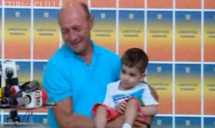 Băsescu a luat un copil în brațe la conferinţa de presă