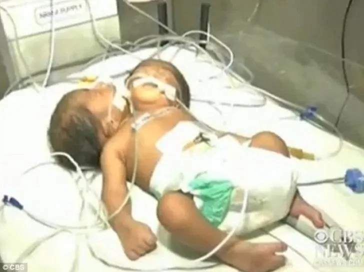 Practic este vorba despre doi bebeluşi, care au capetele separate, sistemul nervos şi coloane vertebrale distincte, lipite mai jos de pelvis. Micuții împart umerii şi coastele.
