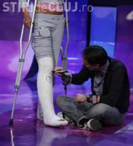 Piciorul drept i-a fost pus in ghips, dar asistenta lui Capatos si-a onorat promisiunea si a mers la emisiunea lui Dan Negru, in carje, dar cu ghipsul personalizat, anunta cancan.ro.