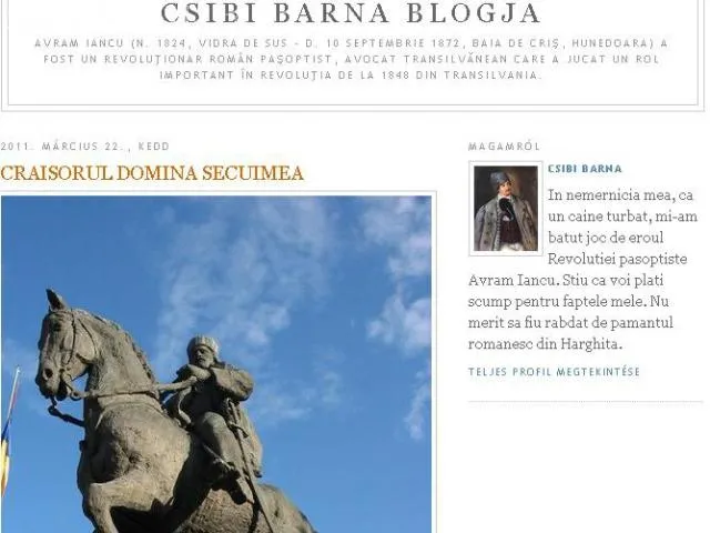 In locul pozei lui Barna este tot o imagine a lui Avram Iancu completata cu un text postat ca si cand ar apartine titularului blogului: „In nemernicia mea, ca un caine turbat, mi-am batut joc de eroul Revolutiei pasoptiste Avram Iancu. Stiu ca voi plati scump pentru faptele mele. Nu merit sa fiu rabdat de pamantul romanesc din Harghita"