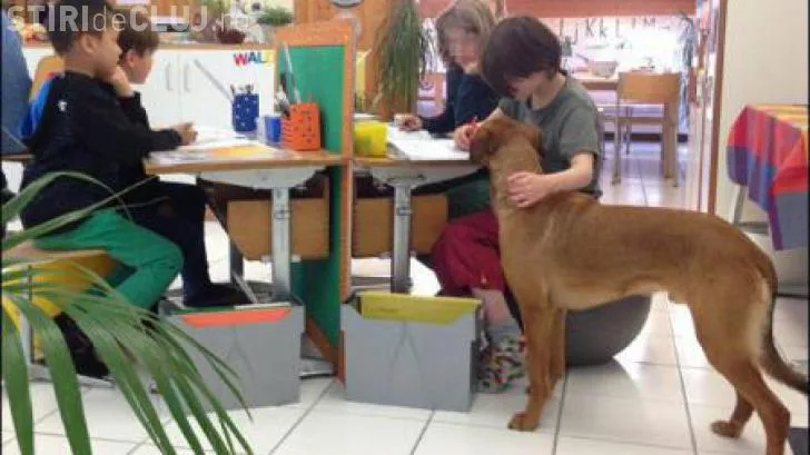 Prezeța câinilor în clasă a făcut și ca teama unor copii față de patrupede să dispară.