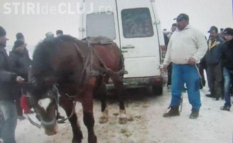 Un cal a fost inhamat la un microbuz in judetul Sibiu, dupa care a fost si biciuit.