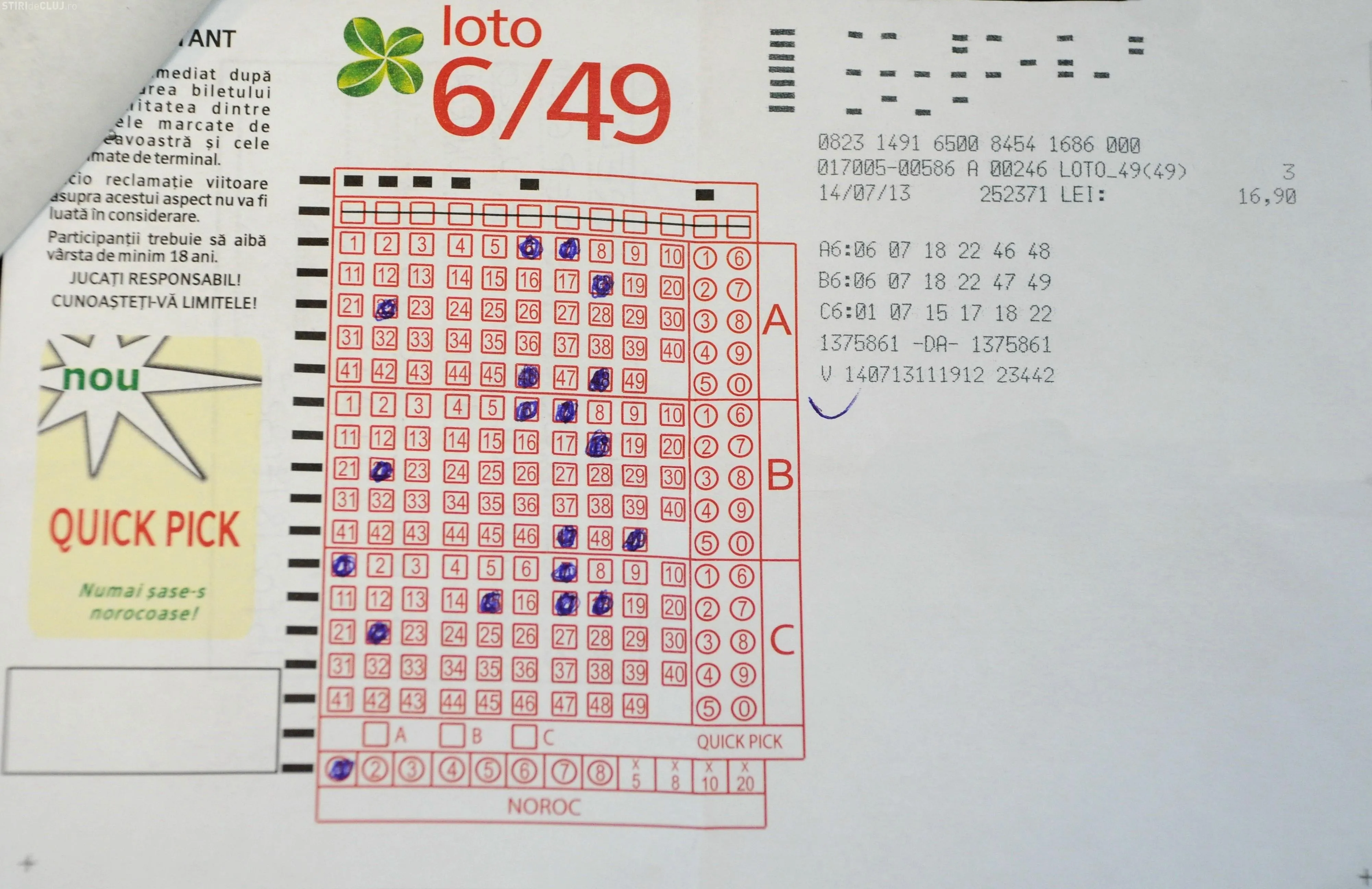 Câștigătorul de la Loto 6 din 49 și-a încasat banii. VEZI biletul câștigător