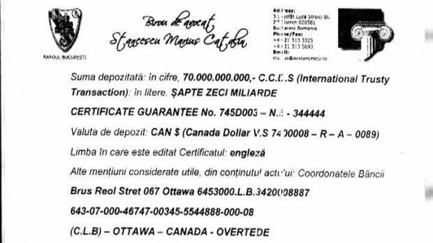 Avocatul Cătălin Stăncescu cere autorităţilor din România să verifice autenticitatea documentelor și să facă demersuri pentru a recupera aceşti bani.