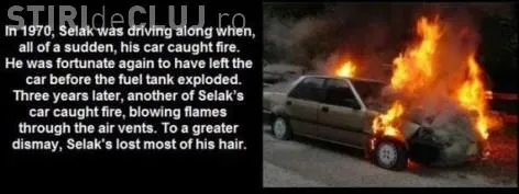 În 1973, o altă maşină a lui Selak a luat foc, de data asta Selak pierzându-şi părul de pe faţă.
