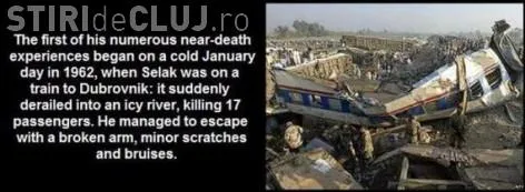 În 1966, mergea cu un autobuz ce a picat într-un râu. Patru oameni au murit, dar Selak a scapat din nou.