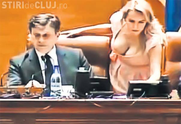 O tânără a devenit vedetă națională fără întenție, după ce în timpul ședinței de suspendare a lui Traian Băsescu s-a aplecat în stânga preşedintelui Senatului, Crin Antonescu, având un decolteu care i-a impresionat pe parlamentari.