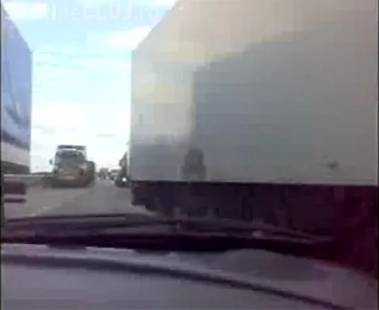 Cei doi tineri se amuza copios pe seama faptul ca ceilalti soferi trebuie sa se traga din fata lor. Circula cu viteza redusa si vorbesc si la telefon, dar traficul este aproape blocat, deoarece TIR -urile trebuie sa faca slalom pentru a evita o coliziune. Acest lucru ii amuza si mai tare si isi vad linistiti de drum.
