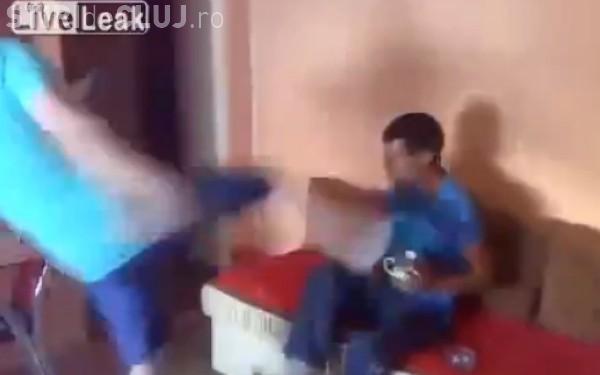 Clipul din România care a scandalizat internetul. Un tată își lovește fiul cu piciorul în cap VIDEO