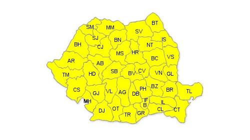 COD GALBEN de ninsori si vant puternic, de joi seara