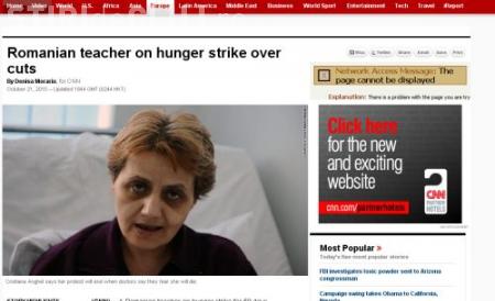Editia online a CNN a relatat despre cazul romancei care se incapataneaza sa lupte pentru drepturile profesorilor. Cristiana Anghel a declarat ca cel mai tare o supara tacerea politicienilor, mai ales a celor de la putere.