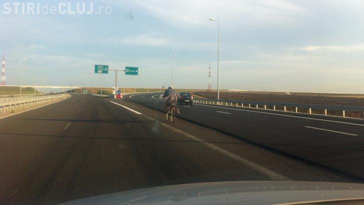 Un bărbat pe o bicicletă a fost surprins pe o autostradă din România.