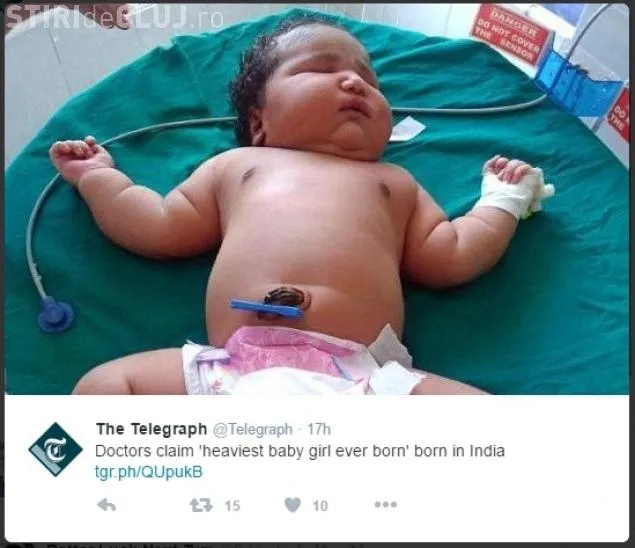 Fetița a cântărit la naștere 7 kilograme. ”In 25 de ani de cariera nu am vazut niciodata un astfel de bebelus. E un miracol. Cred ca nu e doar cel mai greu copil din India, ci din intreaga lume”, a declarat Dr Venkatesh Raju, un doctor local.