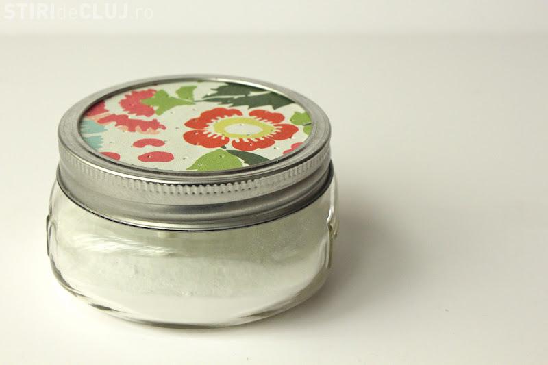 Tot ce trebuie să faci este să torni bicarbonat de sodiu într-un borcan ce are o formă interesantă, apoi să adaugi peste el între 8 și 10 picături de ulei esențial, în funcție de cât de puternic îți dorești să fie mirosul.