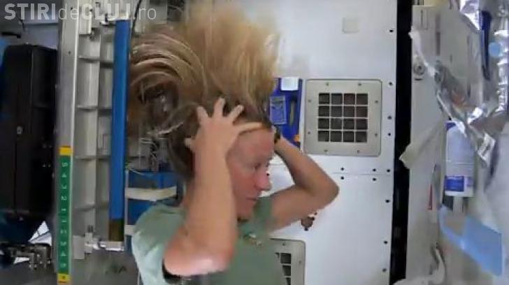 O femeie astronaut a demonstrat cum se spală pe cap astronauţii de pe Staţia Spaţială Internaţională.