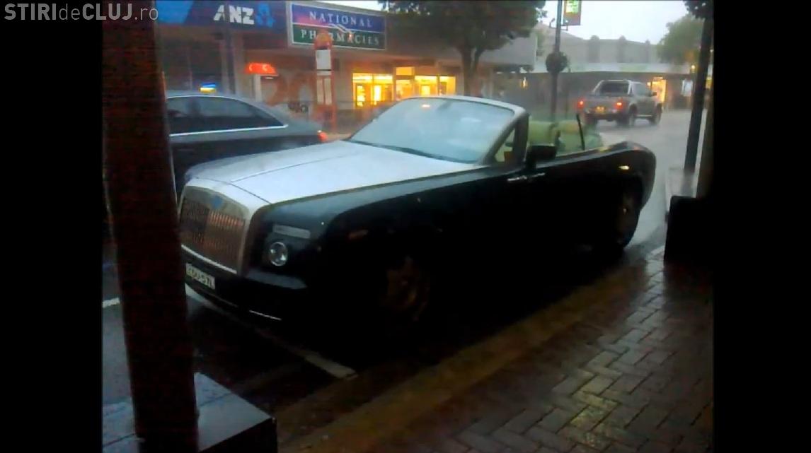 Un sofer din Australia se poate considera cel mai ghioniost de pe planeta, dupa ce o ploaie torentiala i-a distrus un Rolls Royce decapotabil.