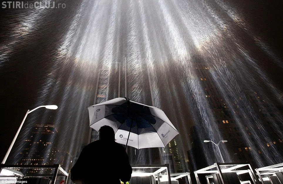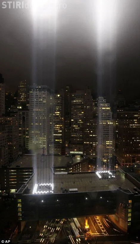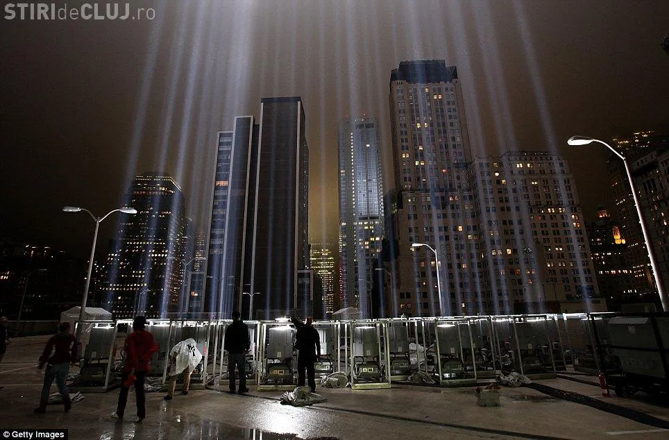 Americanii au facut ultimele pregatiri si au testat "tunurile" de lumina care trimite spre cer fascicule puternice de lumina din zona in care in urma cu 10 ani se inaltau cele doua turnuri gemene.