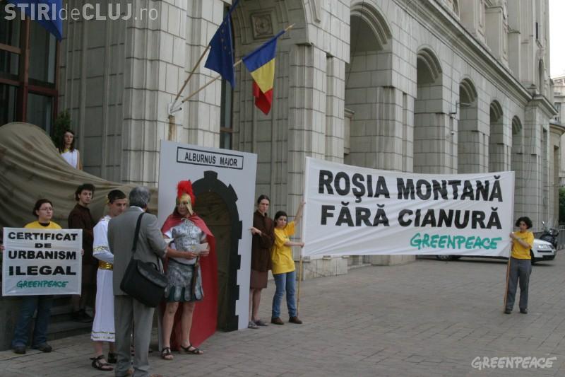 Oficialul guvernamental a primit in audienta 20 de membri Greenpeace Romania. Ecologistii militeaza impotriva proiectului Rosia Montana. Unul dintre ei s-a legat de birou.