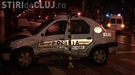 Şoferul autoturismului care a intrat in masina politiei a scapat nevatamat.