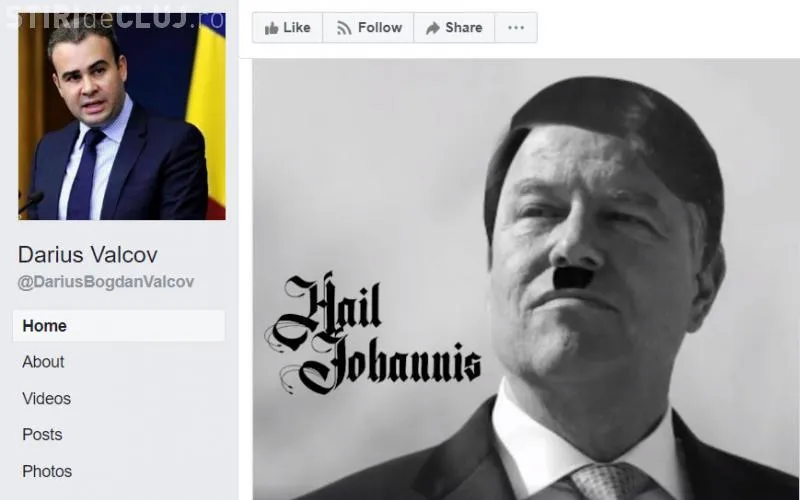 Darius Vâlcov a postat pe pagina de Facebook un filmuleţ în care FDGR este acuzat că este continuatorul mişcării Grupul Etnic German, iar preşedintele Iohannis apare cu o mustaţă şi o tunsoare asemănătoare lui Adolf Hitler.