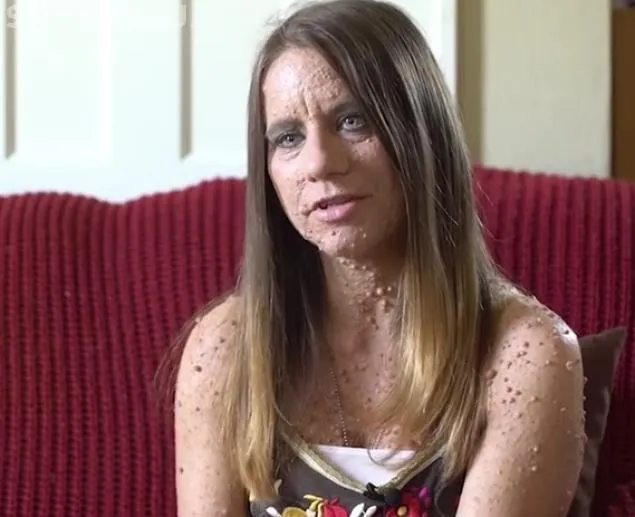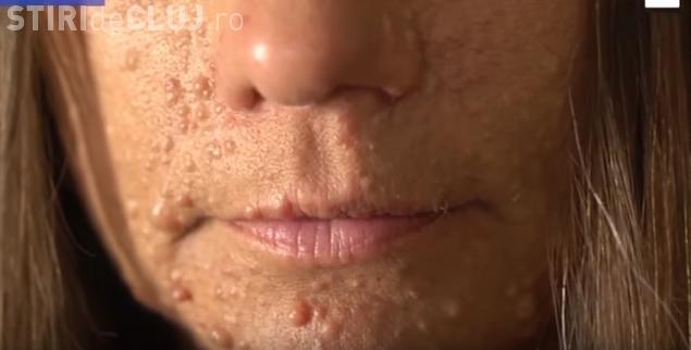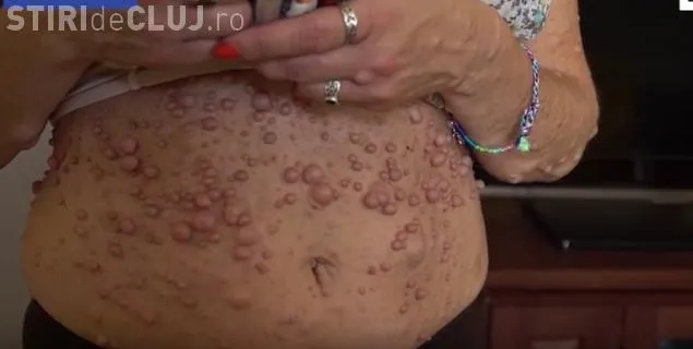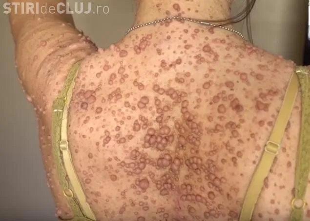 Femeia a fost diagnosticata cu neurofibratoza, o boala care duce la aparitia a numeroase tumori pe suprafata corpului, informeaza Dailymail.co.uk.