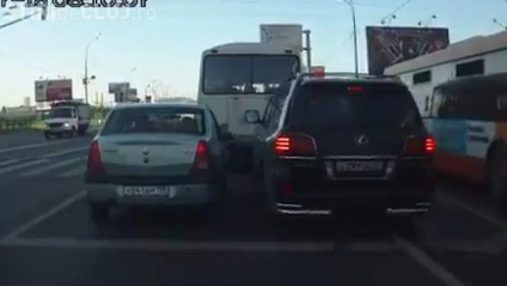 Un Logan și un Lexus și-au măsurat ”mușchii”pe o stradă din Rusia, șicanându-se în trafic.