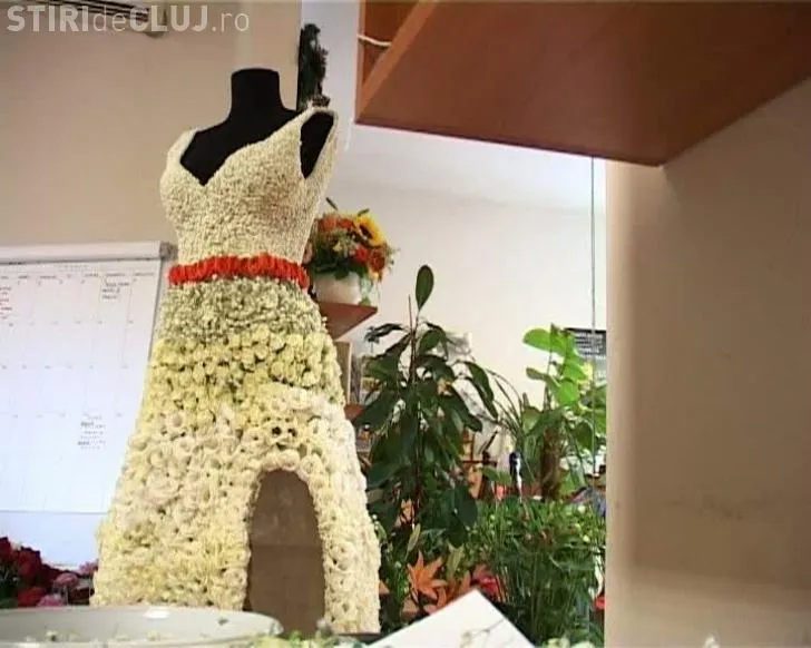 Mai multe florărese au lucrat la foc automat pentru a realiza rochia, care a costat între 3.000 şi 5.000 de euro. În ciuda muncii migăloase, Ioana Selner a fost, însă, o mireasă foarte fericită cu rochia realizată din câteva mii de flori albe de liziantus.