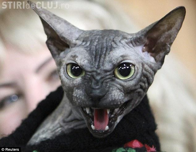 Cea mai infricosatoare pisica din lume are patru colti mari, ochi ca matasea broastei si pielea fara blana.