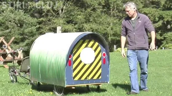 Un bărbat și-a prezentat rulota trasă de o bicicletă cu care străbate America.