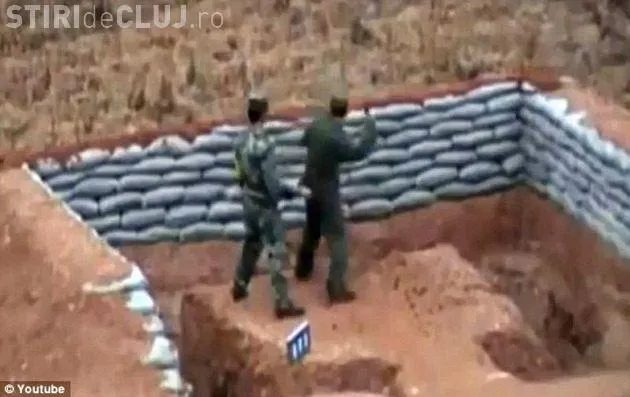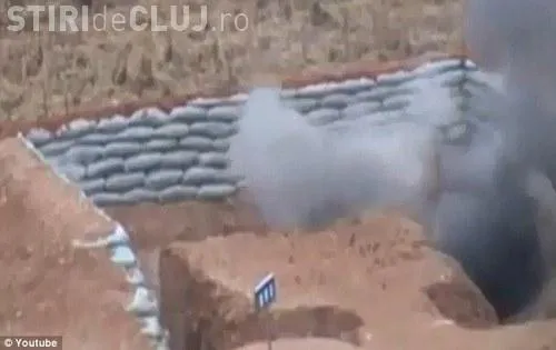 Soldatul care apare in imagini si se pregateste sa arunce grenada, dar o scapa si aceasta cade intr-un sant din apropiere, scrie Daily Mail.