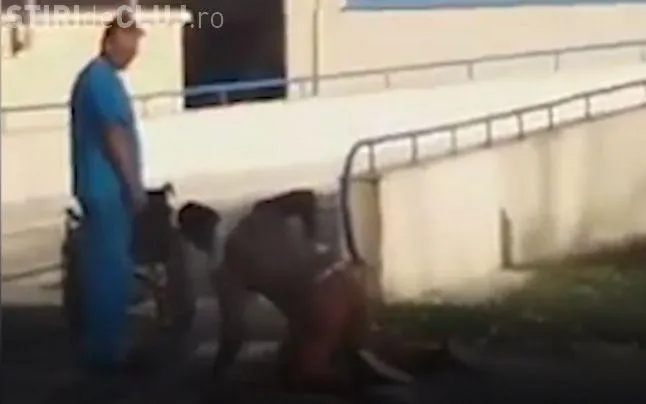 Externare în genunchi la un spital din România. Pacientul se târăște, iar infirmierul se uită la el - VIDEO