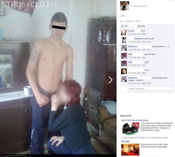 El, la bustul gol cu pantalonii in vine. Ea in genunchi, in fata lui. Asa arata poza (foto 2) cu cei doi care nu s-au jenat sa o faca publica pe Facebook in conditiile in care fata ii facea sex oral. Mai intrigant este ca poza a fost facuta de o a treia persoana care s-a amuzat copios si care, probabil, a facut-o publica.