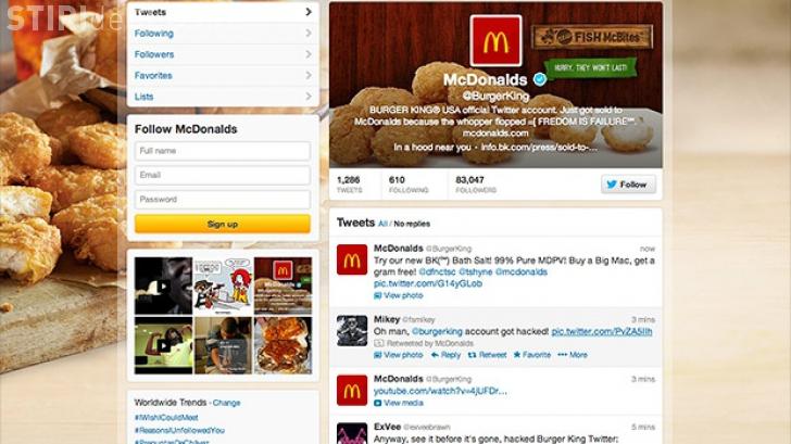 Contul de Twitter al Burger King a fost spart, iar hackerii au scris că firma a fost cumpărată de McDonald's.