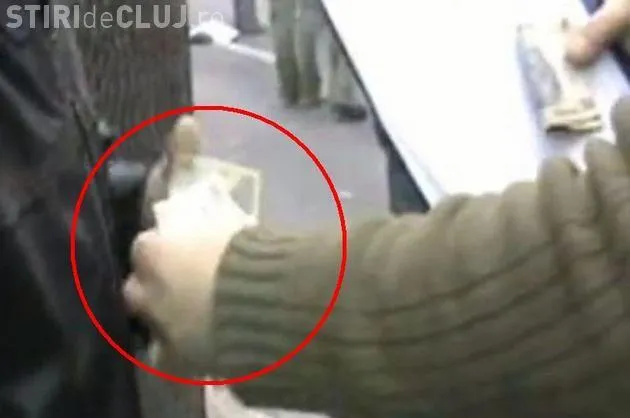 Un barbat imparte cate 50 de lei catorva manifestanti, dupa ce le cauta numele pe o lista.