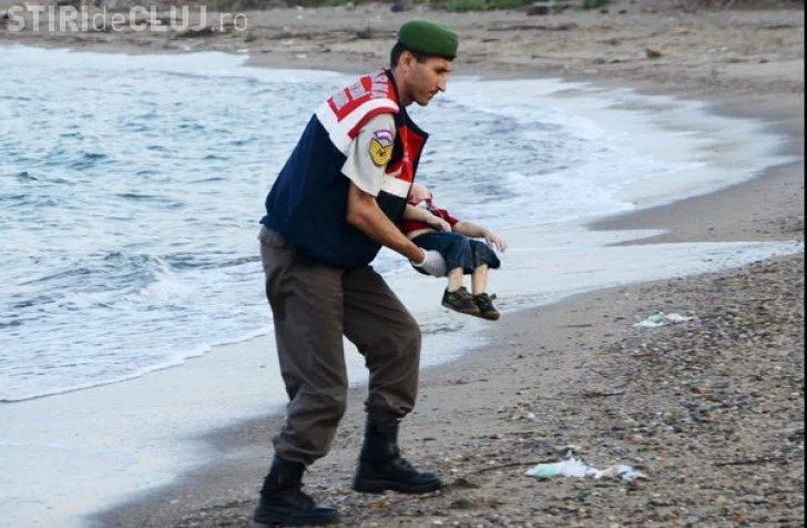 Imaginile cu jandarmul care ia trupul copilului în brate sunt greu de descris în cuvinte. Copilul se numără printre cei 11 refugiaţi sirieni despre care se crede că s-ar fi murit înecaţi după ce două ambarcaţiuni care îi transportau pe mare s-au scufundat în largul coastelor insulei greceşti Kos.