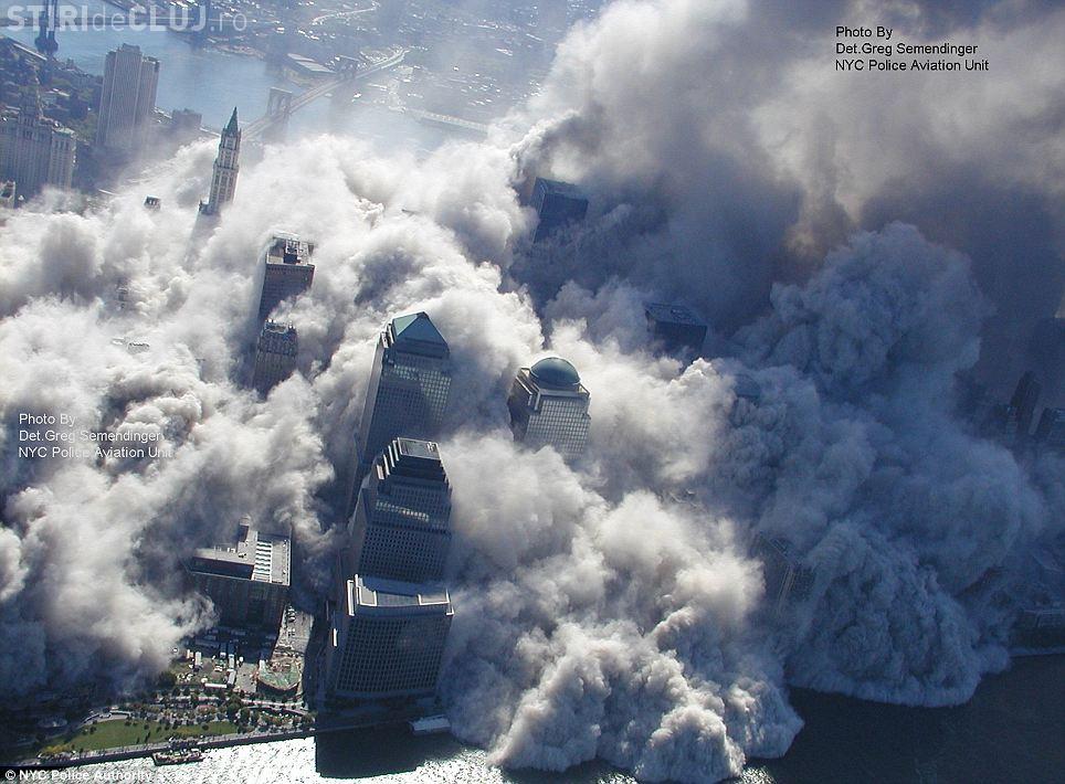 Fotografiile in premiera cu prabusirea celebrelor turnuri din New York au fost date publicitatii de NYPD. Imaginile au fost surprinse dintr-un elicopter al politiei si prezinta dezastrul de la sol.