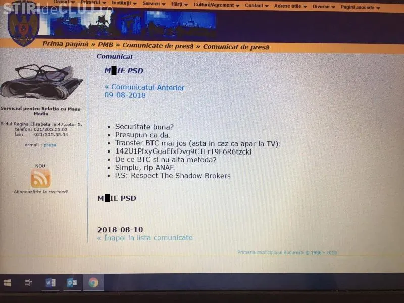 Site-ul oficial al Primăriei Municipiului București a fost spart, iar hackerii au publicat două comunicate de presă cu mesajul injurios la adresa PSD-ului.