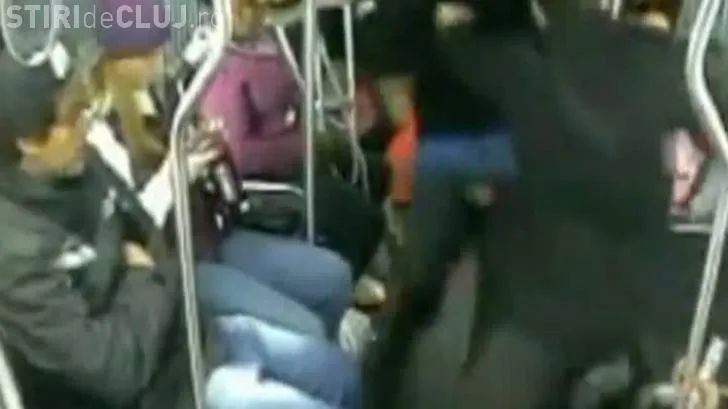 Hoț bătut măr de pasagerii dintr-un autobuz. Bărbatul i-a amenințat cu un pistol - VIDEO