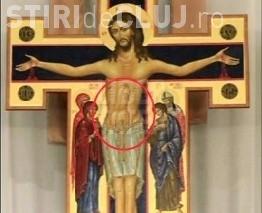Artistul care a pictat crucifixul a desenat muschii abdominali, care seamana cu organul genital masculin.