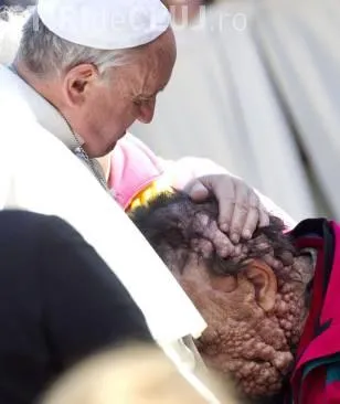 Între cei 50.000 de credinciosi ce s-au apropiat de Papa miercuri, figura unei persoane acoperita de negi uriasi a impresionat pe toata lumea. Barbatul a fost vazut de Papa printre cei aflati in multime, iar Francisc s-a oprit pentru a-l lua in brate, scrie stirileprotv.ro.