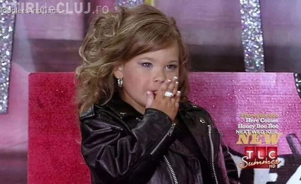 Micuţa Destiny, în vârstă de 4i ani, şi-a aprins o ţigară şi s-a prefăcut că fumează, apoi a dansat provocator în timpul controversatei emisiuni americane „Toddlers and Tiaras".