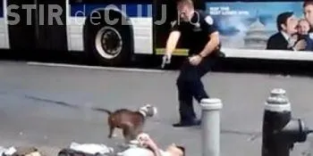 Imagini ŞOCANTE: Un câine, ÎMPUŞCAT de un poliţist în timp ce-şi apăra stăpânul leşinat VIDEO
