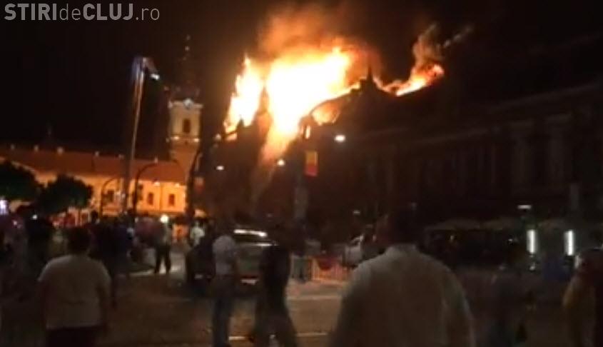 Piața Unirii a fost evacuată din cauza acestui incendiu puternic din Oradea. În scurt timp, pe internet au apărut clipuri video realizate de martori.