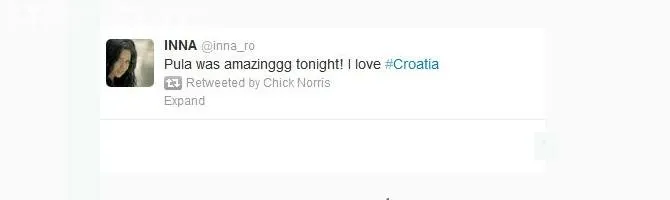 În urma unui concert susținut în Croația, Inna a postat pe Twitter un mesaj în care să își exprime dragostea față de fani, dar rezultatul a fost unul controversat.