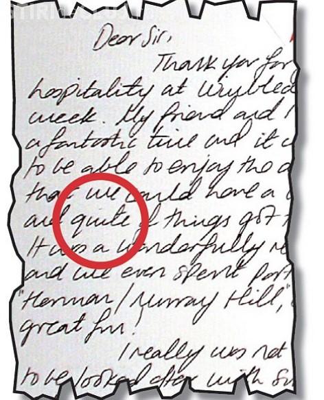 Scrisoarea a fost expediata in 2008 oficialilor de la Wimbledon pentru a le multumi pentru ospitalitatea din timpul turneului.