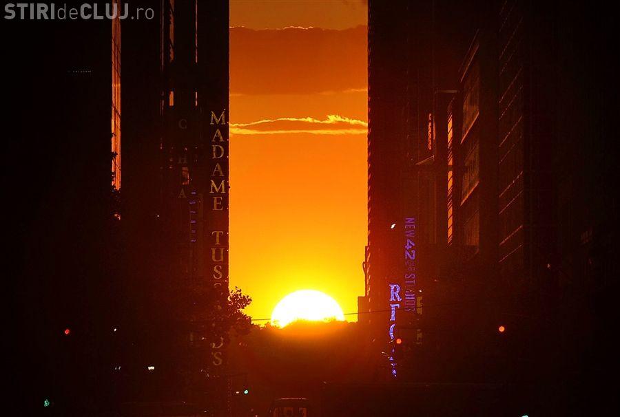 Fenomenul care a început de acum câteva zile și se produce de patru ori pe an. Denumirea de "Manhattanhenge" vine de la numele sitului megalitic Stonehenge din sudul Marii Britanii.