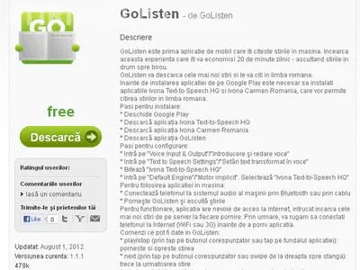 Mediafax Group, compania care furnizează cel mai diversificat conţinut media din România, a lansat aplicaţia GoListen, prima aplicaţie Android care le citeşte utilizatorilor ştirile de pe internet.