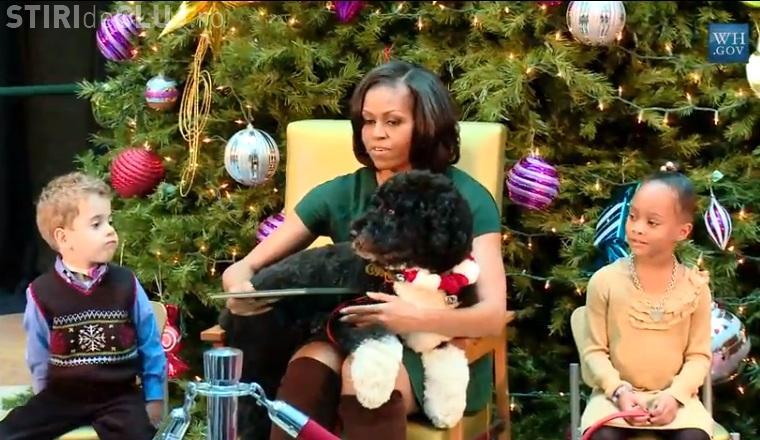 Prima Doamnă a Statelor Unite, Michelle Obama, le-a citit o poveste copiilor de la un spital din Washington, dar a fost protagonista unui moment amuzant ”regizat” de cainele familiei, Boo.