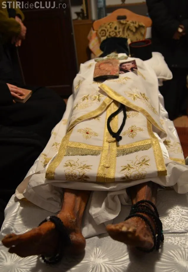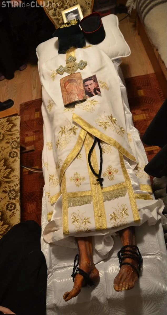 O serie de fotografii cu trupul parintelui Calciu, deshumat anul trecut, conform testamentului sau, arată că trupul s-a mumificat așa cum a prezis el.